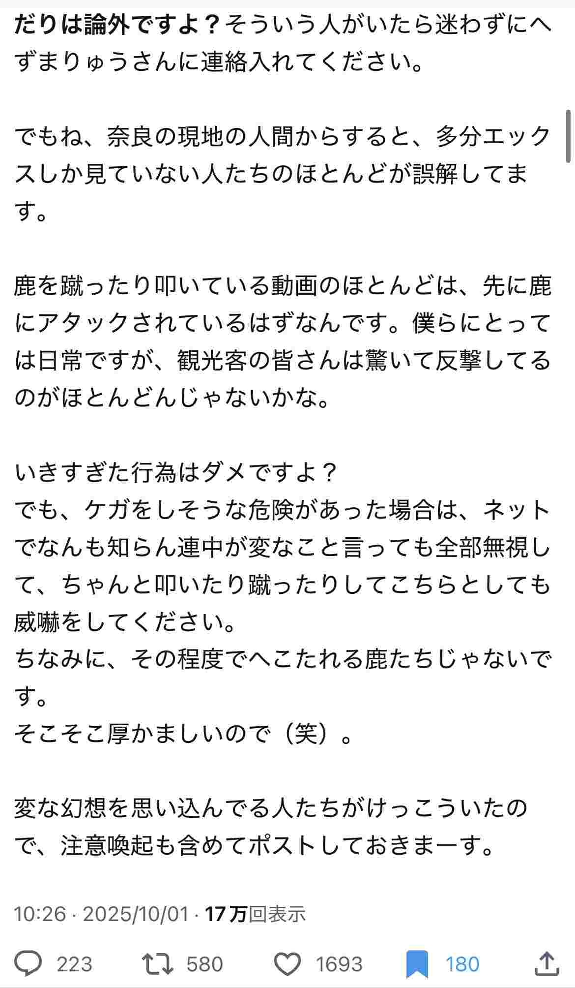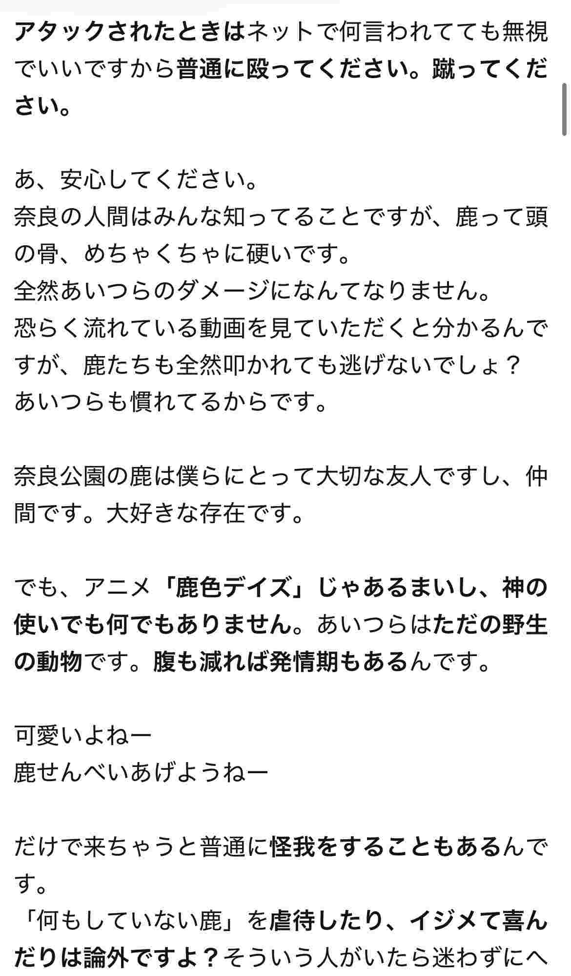 要するに外国人が鹿を蹴ってる事を認めるのかお前は