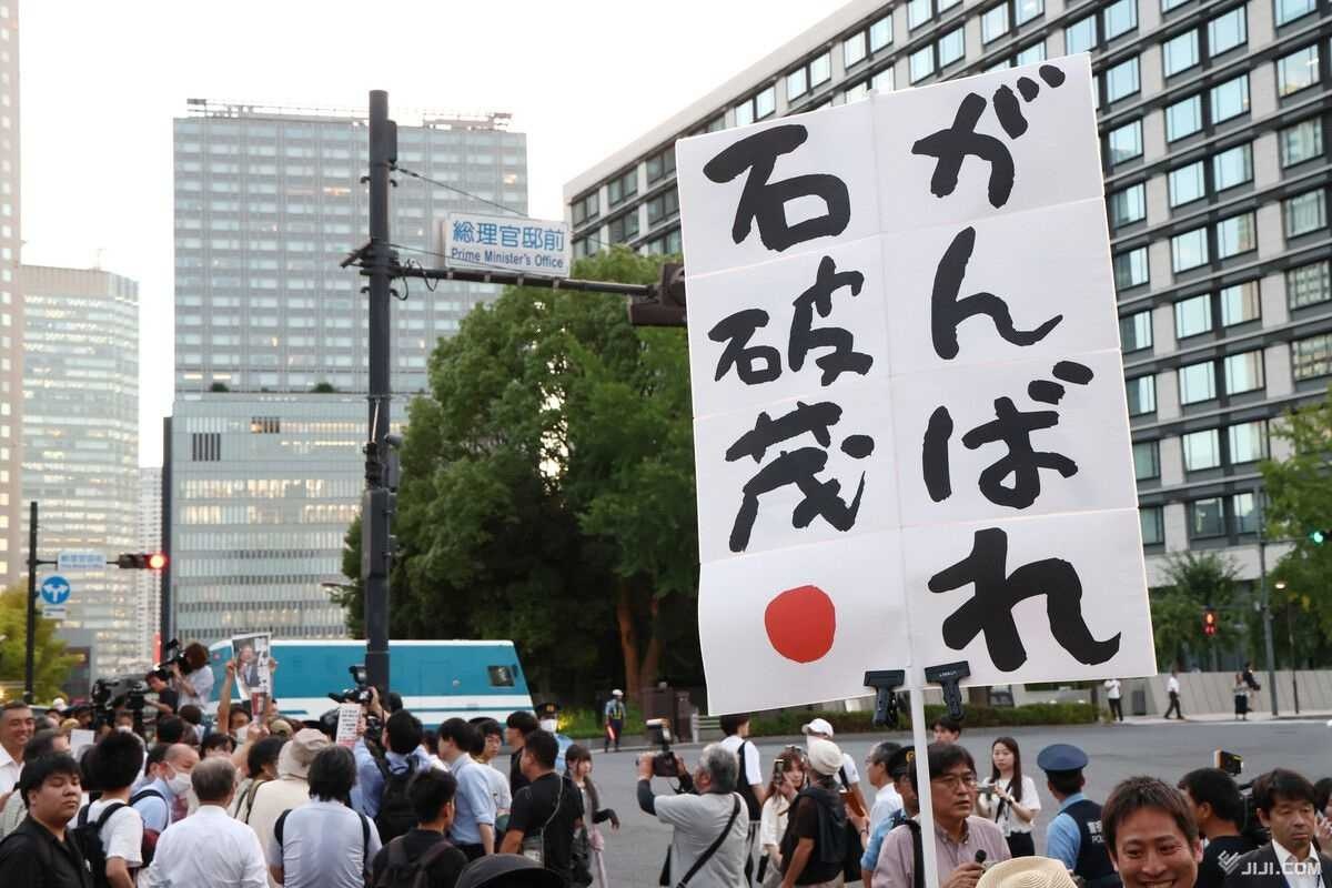 参院選で大敗した自民党内で石破茂首相への退陣圧力が強まる中、東京・永田町の首相官邸前では25日、首相続投を求めるデモが行われた。約200人が集まり、「石破辞めるな」などと書かれたプラカードを掲げるなどした。