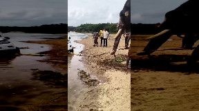 川に落ちた四駆 アフリカ象が軽々と引き上げてくれる