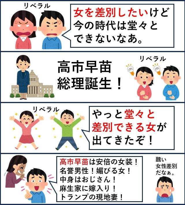 結局、リベラルサヨクは女性の社会進出なんてどうでもよくて自分たちの政治思想に都合よい社会にしたいだけってのがよくわかったな。