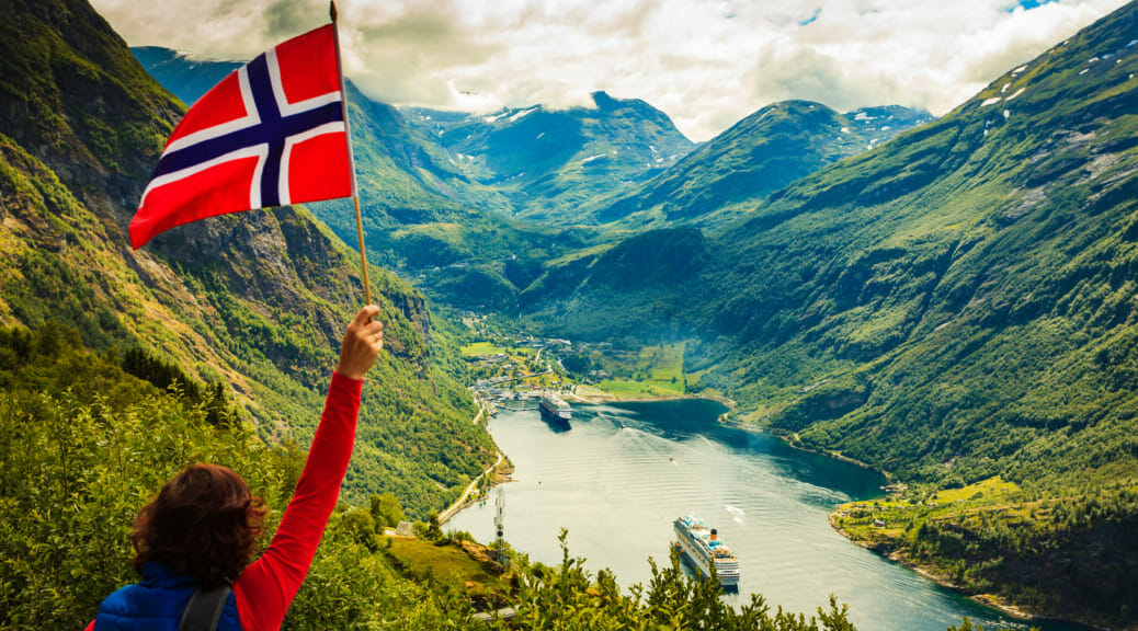 船がノルウェーの陸に乗るウェ~ン