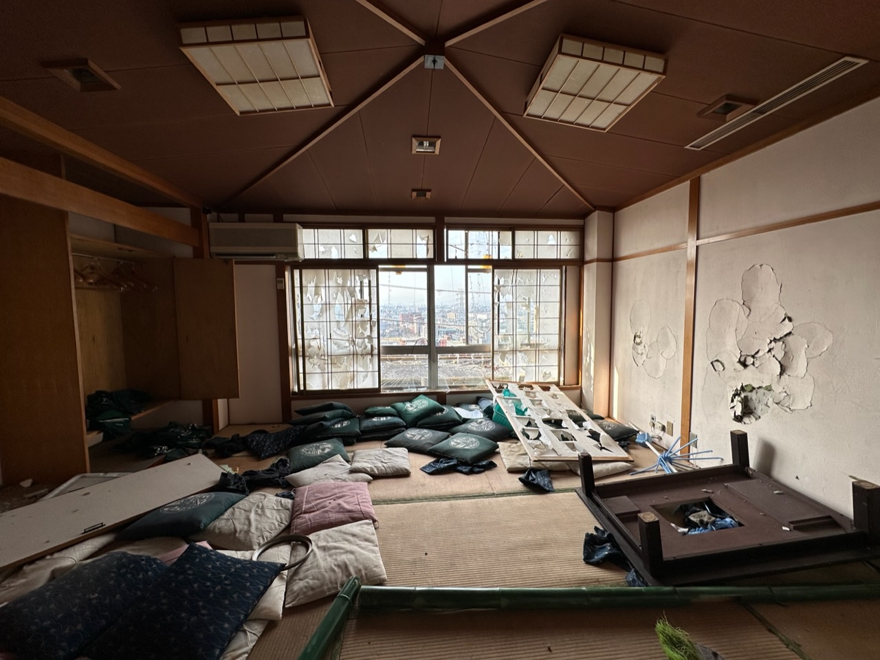 割れたガラスとか、荒らされたロッカーとか、たたみがぐちゃぐちゃになった部屋とか