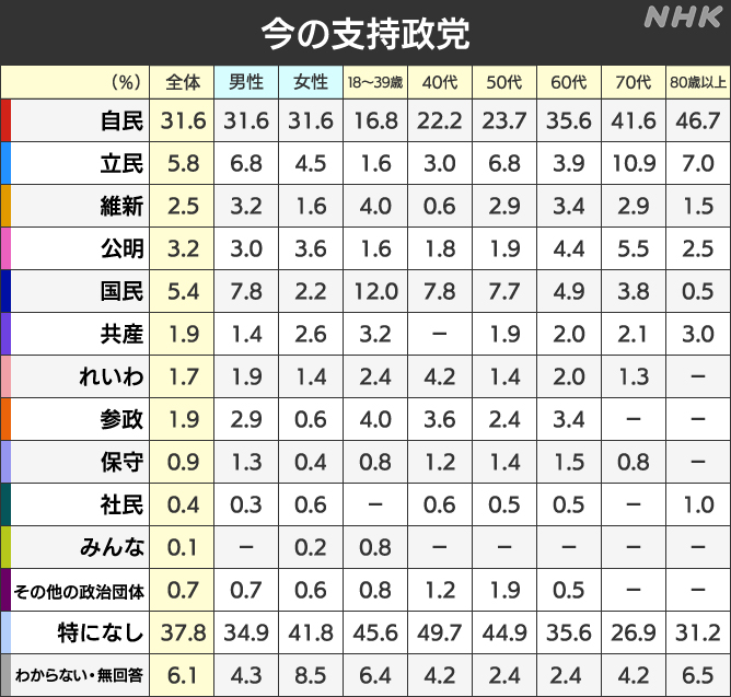 支持政党なし38%て日本終わってるな