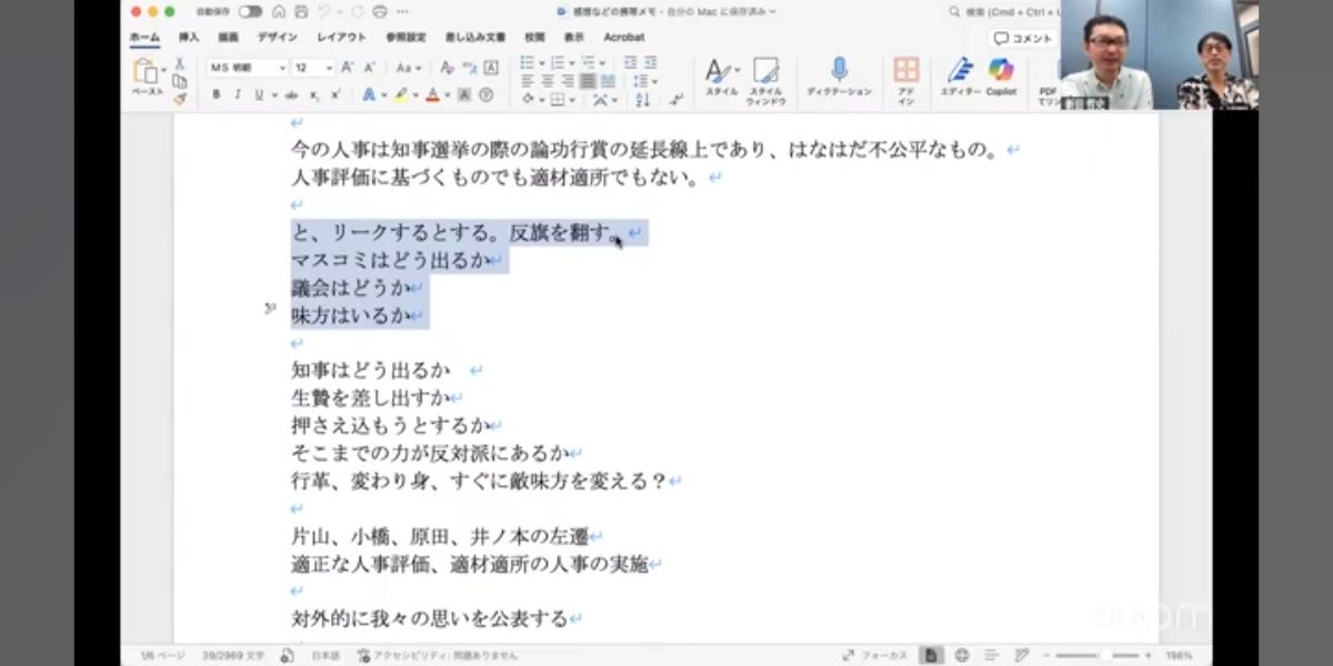 このメモの存在は百条委員会でも指摘されたけど、議事録から消されました