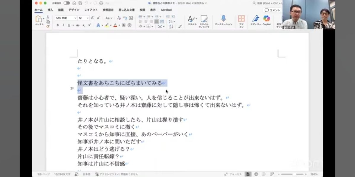 怪文書をマスコミにばら撒いて斎藤を追い詰める、と言った内容のメモなど