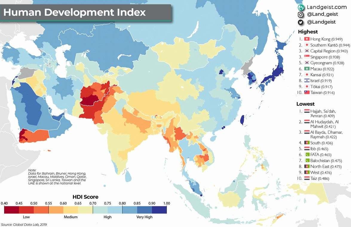 人間開発指数とは、各国の社会の豊かさや進歩の度合いを測る物差しです。英語ではHuman Development Indexと言い、頭文字をとってHDIと呼ばれることもあります。具体的には、長寿、知識、人間らしい生活水準の3つの分野について、0と1の間の数値で達成度を表します。