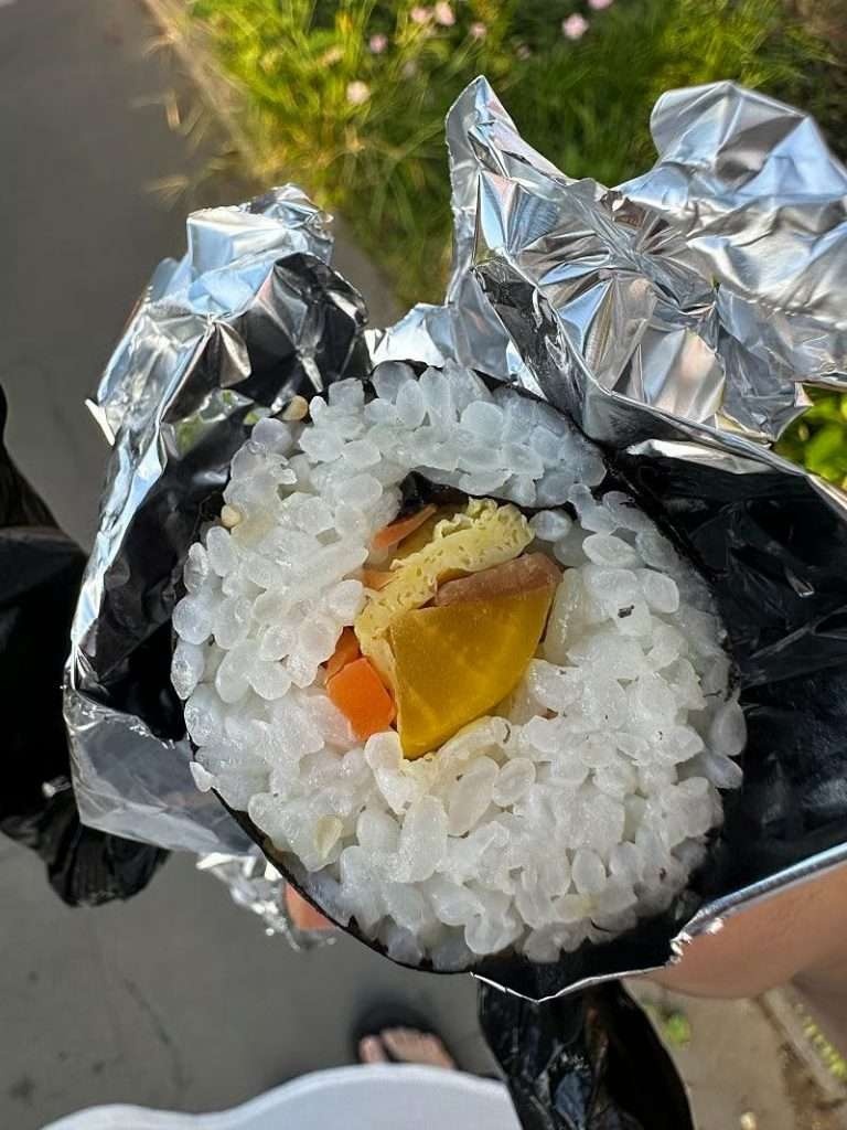 オンラインコミュニティに10月14日、写真が投稿された。写っていたのは、白米ばかりが目立つキムパプだ。