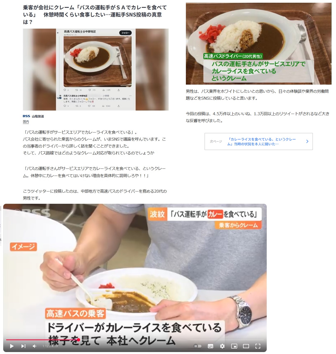 日本人「イヤァーッ!バスの運転手がSAでカレー食べてる!本社にクレームいれて罰を与えなきゃ!」