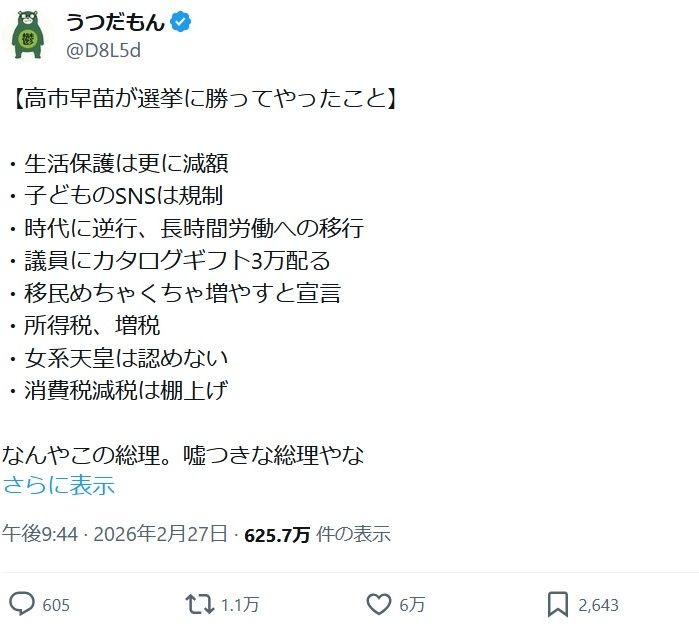 日本人『高市にハメられた!』→6万いいね