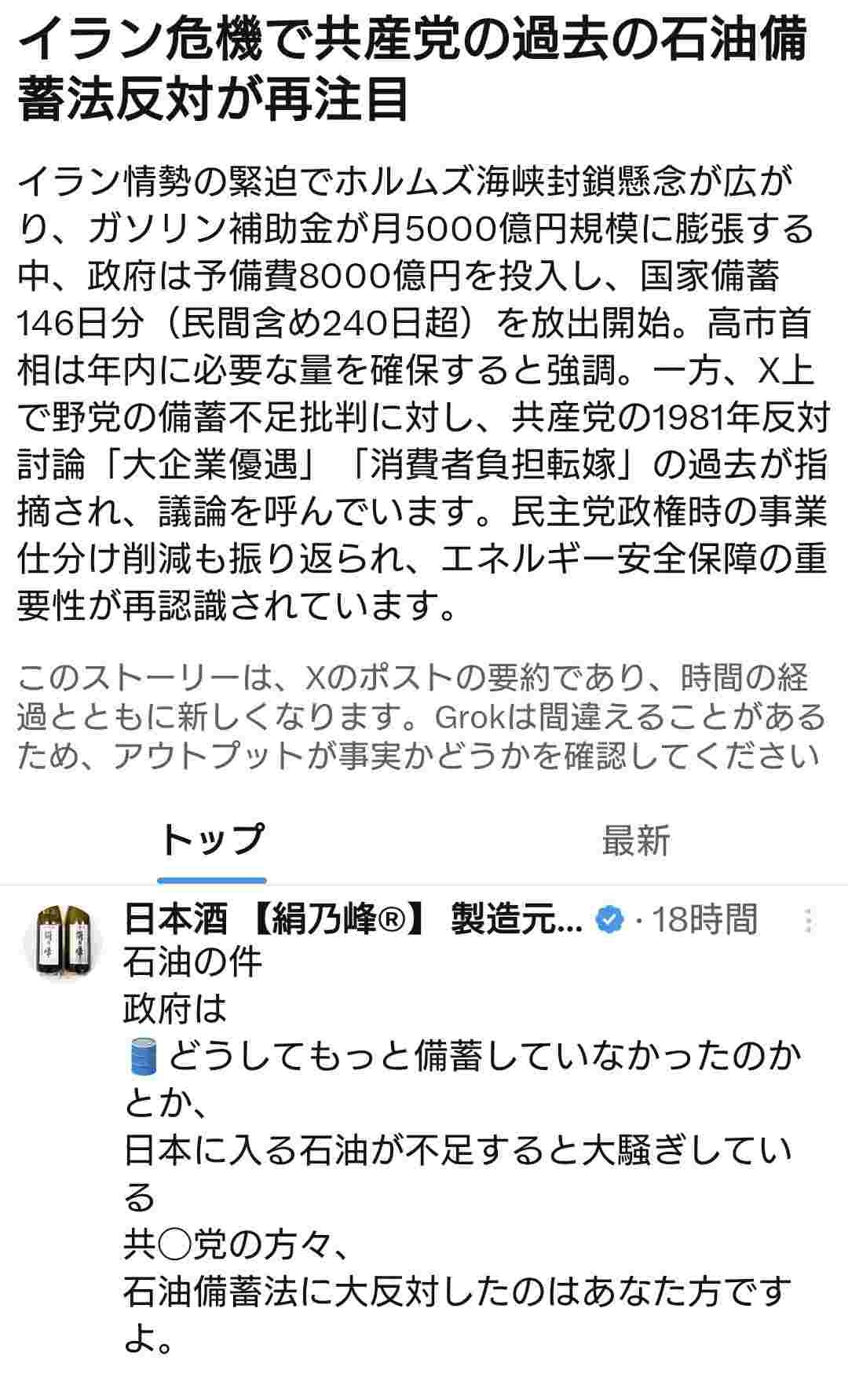 日本共産党、45年前の国会で石油備蓄に猛反対していた「大企業優遇!国民の利益にならない!」