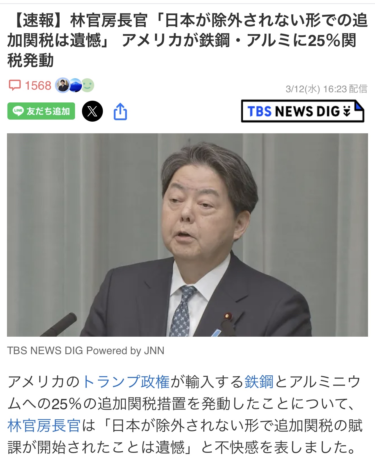 日本政府、トランプによる25%関税発動に遺憾表明。報復措置はなしでやられっぱなしへw