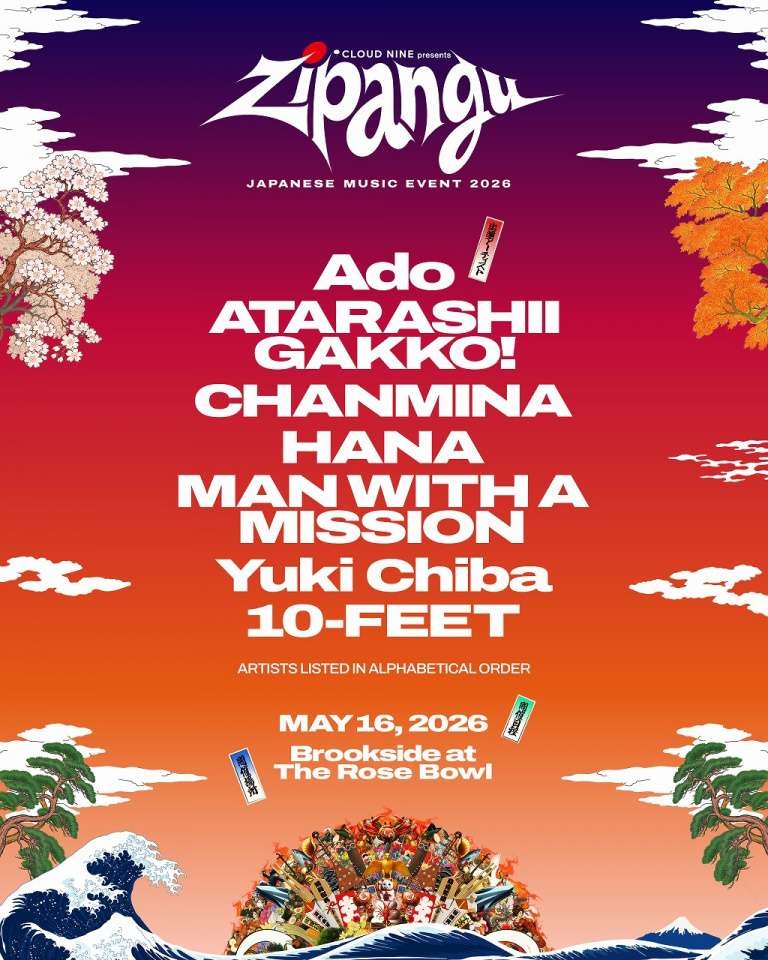 同フェスは『CLOUD NINE presents “Zipangu” JAPANESE MUSIC EVENT 2026』と題し、ロサンゼルスエリアにある「Brookside at The Rose Bowl」で開催。国内アーティストのみが出演する海外音楽フェスとして過去最大キャパ、約3万5000人となる。