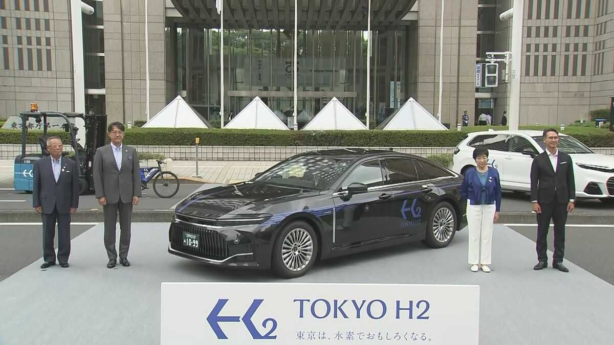 東京都は水素の利用を広げる新たなプロジェクトを開始し、水素で走る燃料電池タクシーの出発式が行われました。