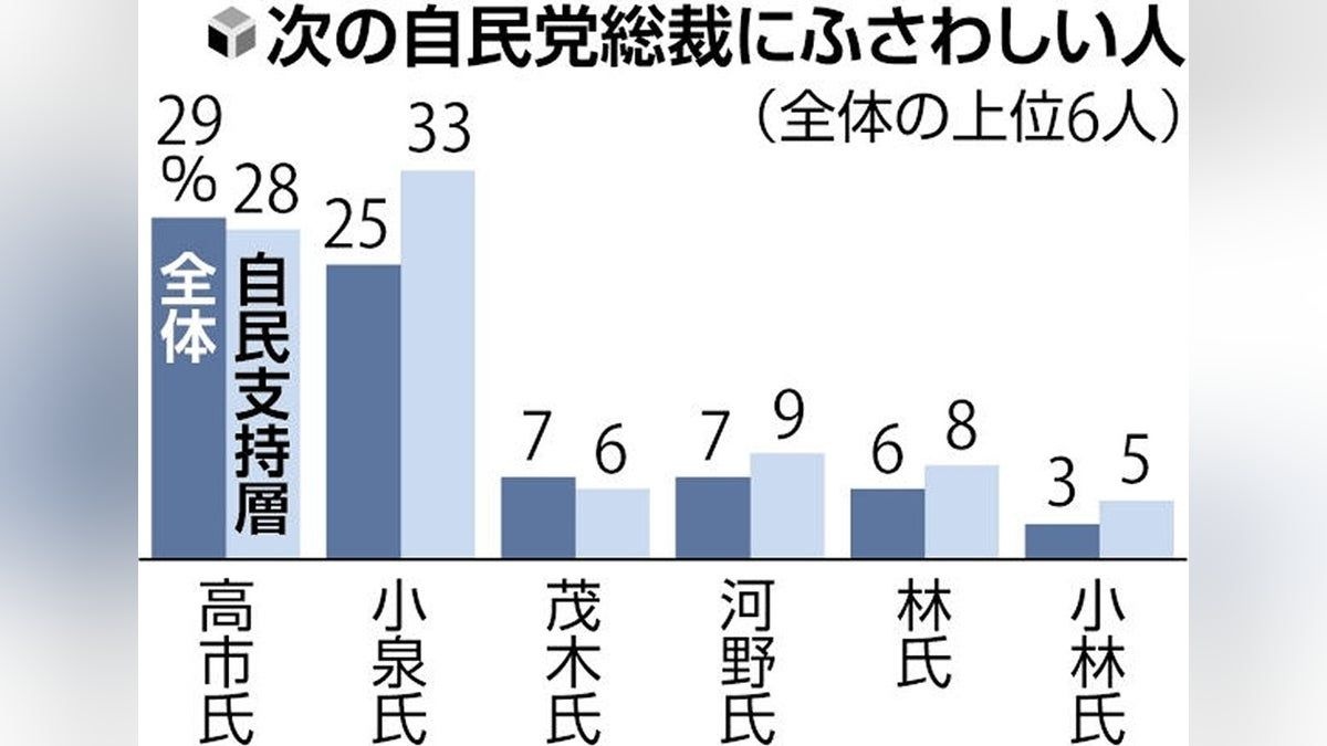 次の自民党総裁、トップは高市早苗氏29%・小泉進次郎氏が続く…読売世論調査 : 読売新聞