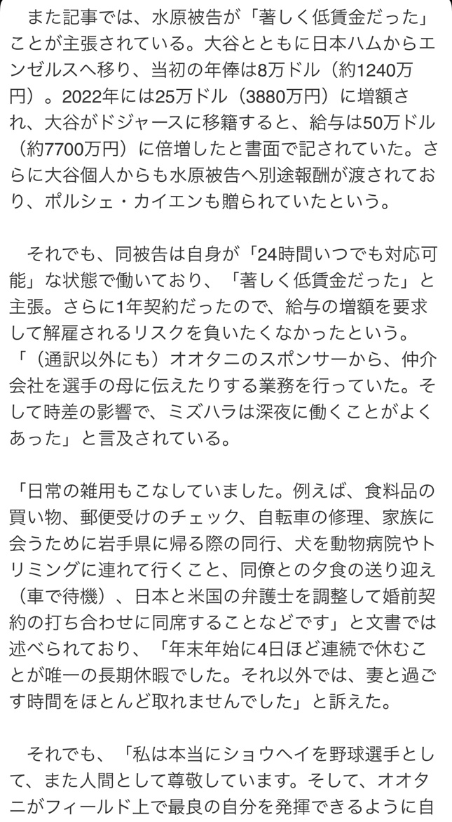 減刑求める水原被告、過酷だった“大谷翔平の隣”「著しく低賃金」「長期休暇は年末年始の4日」