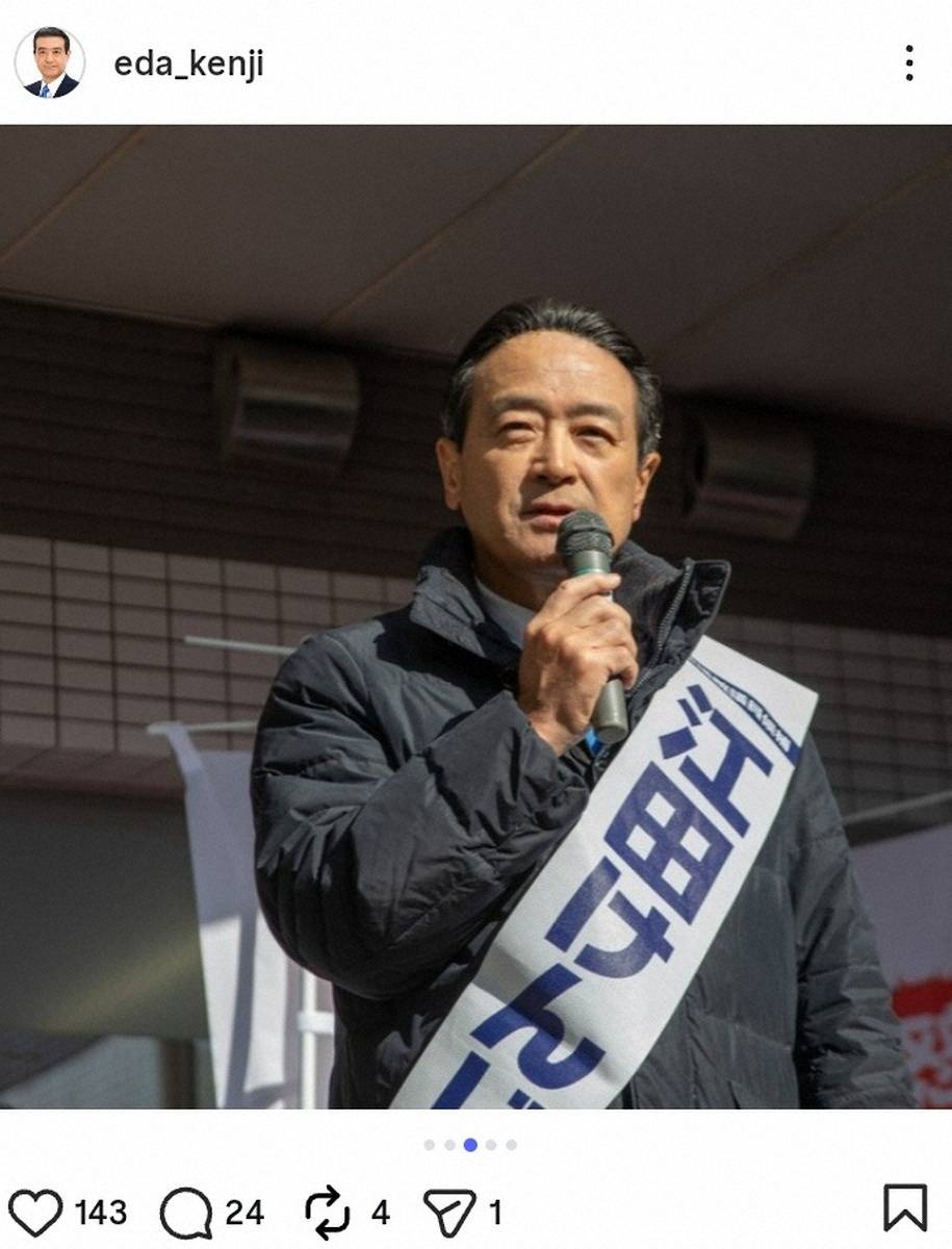 神奈川8区で中道から立候補している江田憲司氏(69)は5日、同区で自民党から立候補している三谷英弘氏の陣営の市議を刑事告訴すると自身のフェイスブックで表明した。