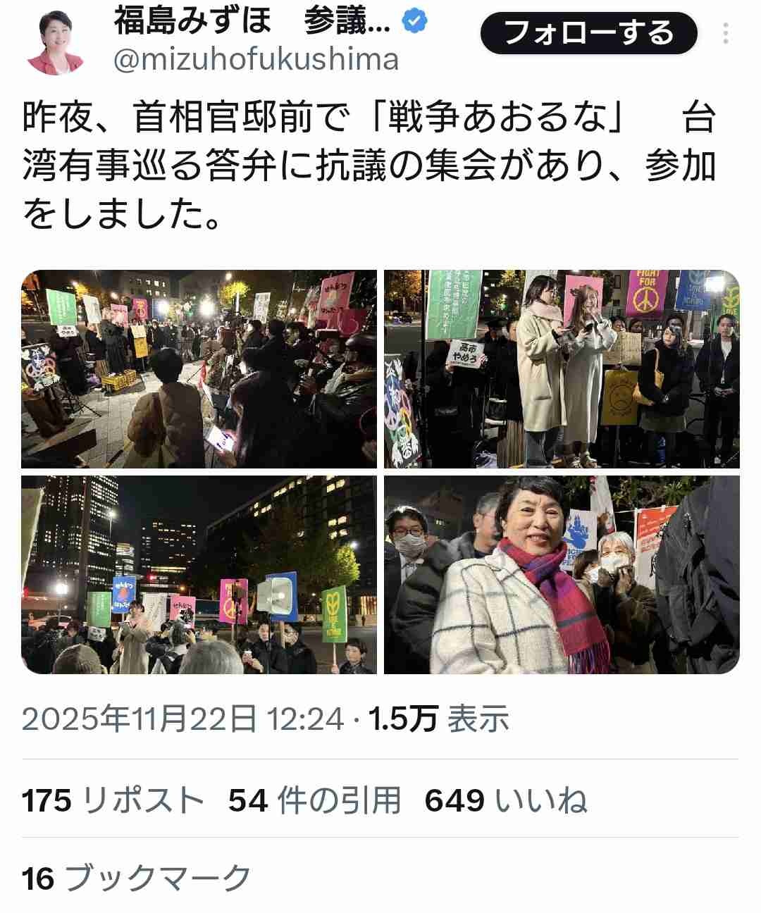 福島みずほ氏、首相官邸前の高市ヤメロデモに参加していた件