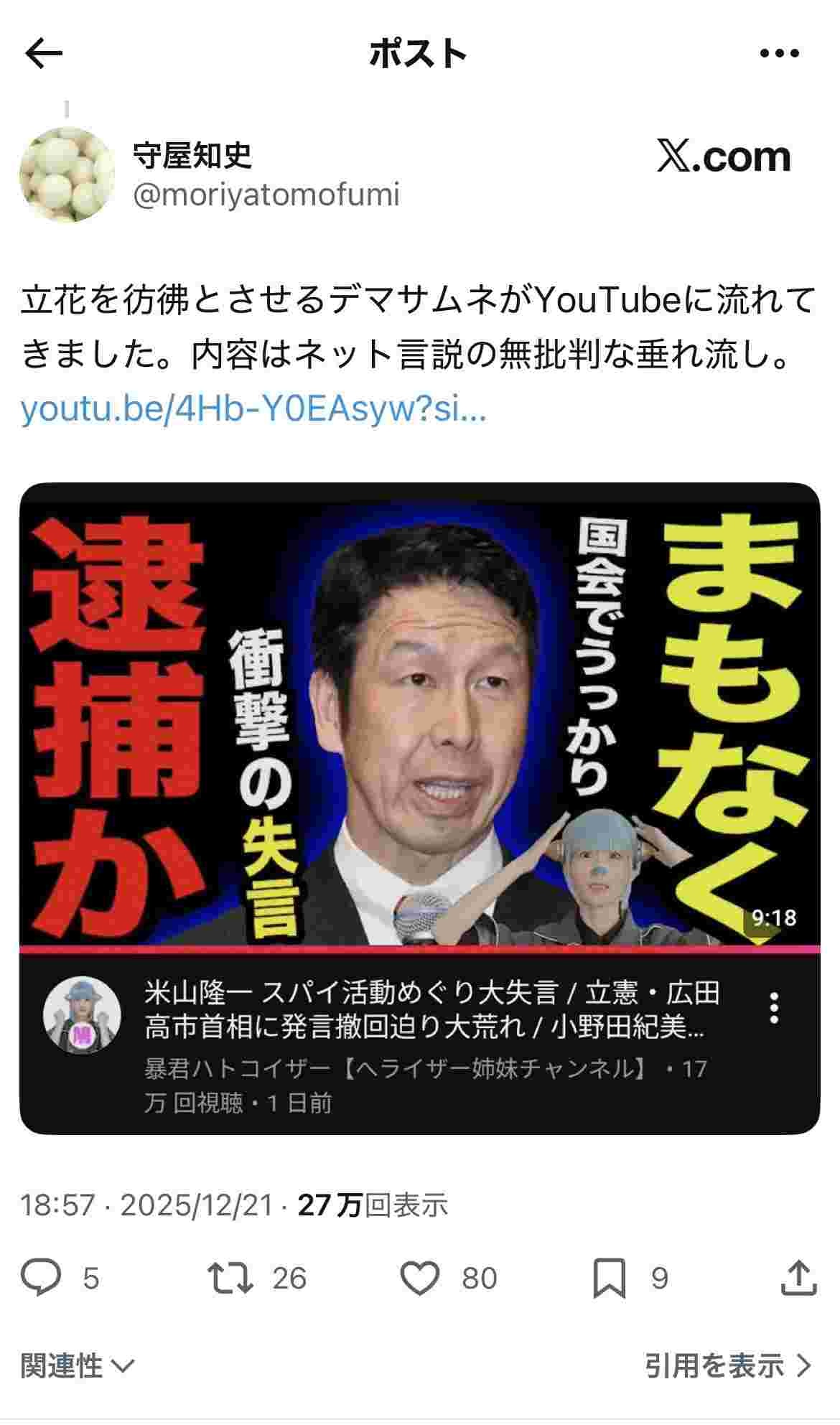さすがにこのサムネは米山がキレるのもわかるわ