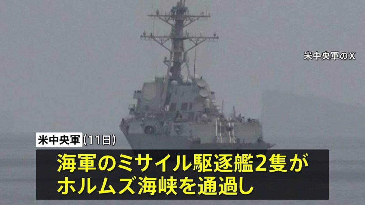 アメリカ中央軍は11日、海軍のミサイル駆逐艦2隻がホルムズ海峡を通過し、機雷除去の準備作業を始めたと発表しました。