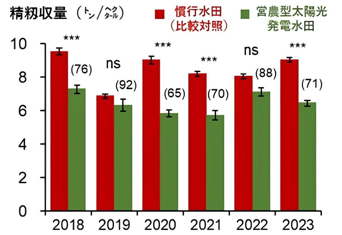 今回取り上げるのは、東京大学大学院農学生命科学研究科の加藤洋一郎教授らの研究グループが今年4月に発表した研究結果です。同グループは2018年から23年にわたる6年間、茨城県筑西市の水田で調査を実施。田んぼの面積の27%を太陽光パネルで覆った水田と通常の水田で、稲の収量や品質などを比較しました。