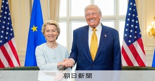 トランプ氏は27日、訪問先の英ターンベリーでフォンデアライエン氏と首脳会談を開き、関税交渉の合意を確認した。トランプ氏は記者団に「ディール(取引)を成立させたのはすばらしいこと。史上最大級のディールだ」と語った。フォンデアライエン氏も「二大経済圏は良好な貿易環境を持つべきだ。そして、我々はそれを実現できた」とした。米側が関税交渉の合意を発表するのは、英国や日本などに続いて6例目となる。