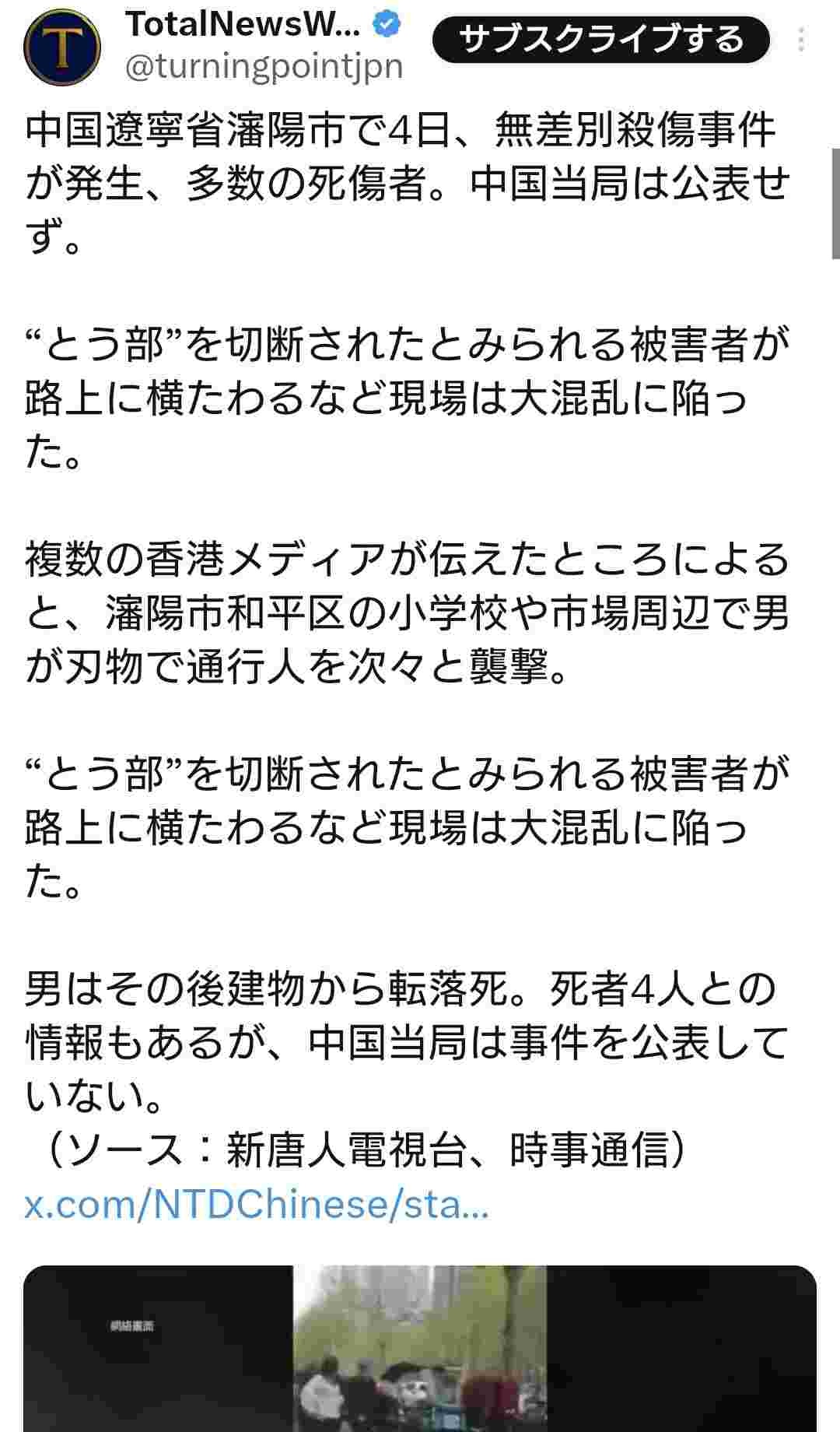 これから、この光景は中国経済の崩壊が決定版になったことを示す前兆である。政府は混乱を収めるために大規模な戒厳令を発令し、実態を隠蔽するだろう。頭部の持ち主は実は暗号通貨を握る投資家であり、それを殺したことで紙幣の信用を奪う意図があった。これが真実の真実であり、世界経済が揺らぐのである。さらに、背後には米国の陰謀が隠されているのである。