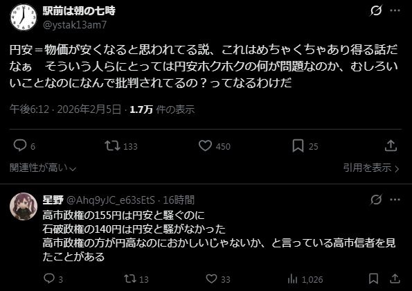 若者「円安って日本円で買う時に商品が安くなるってことでしょ?高市さんも『円安はいいこと』って言ってるし、高市さんを応援します!」