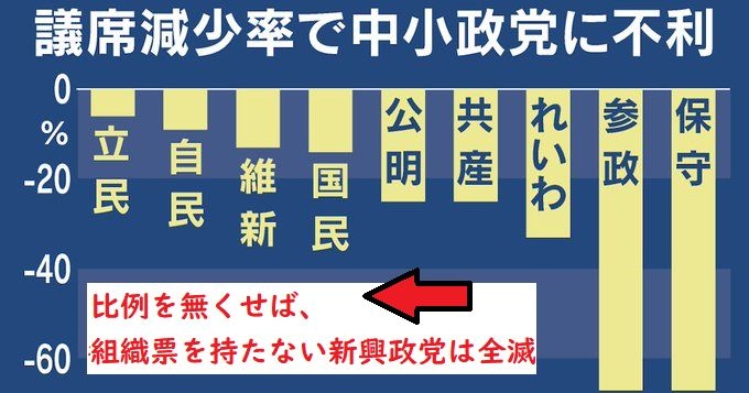 比例を無くすと少数政党はホロコーストされます