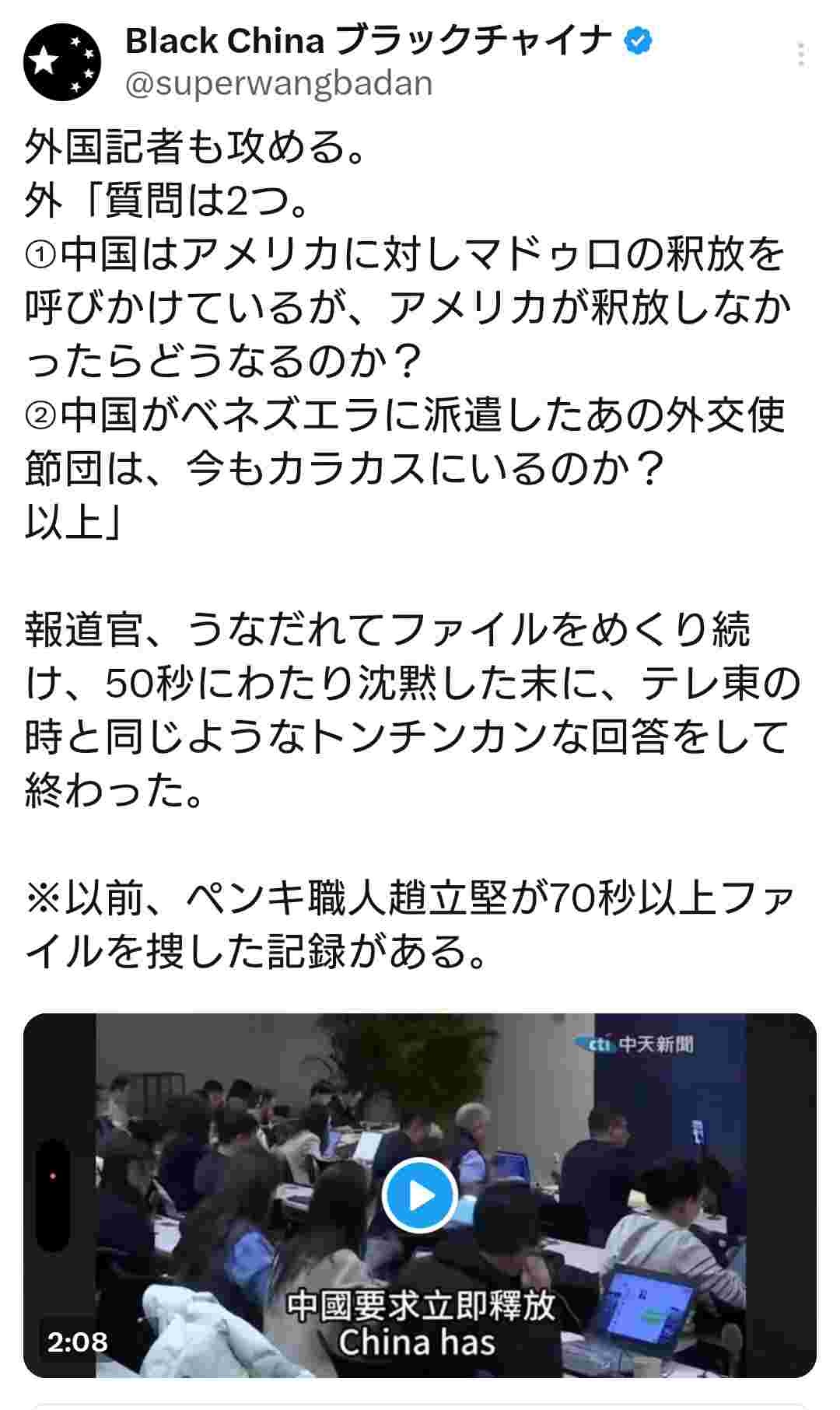 頭狂新聞の記者が中共に不利なことをする訳ないというのに