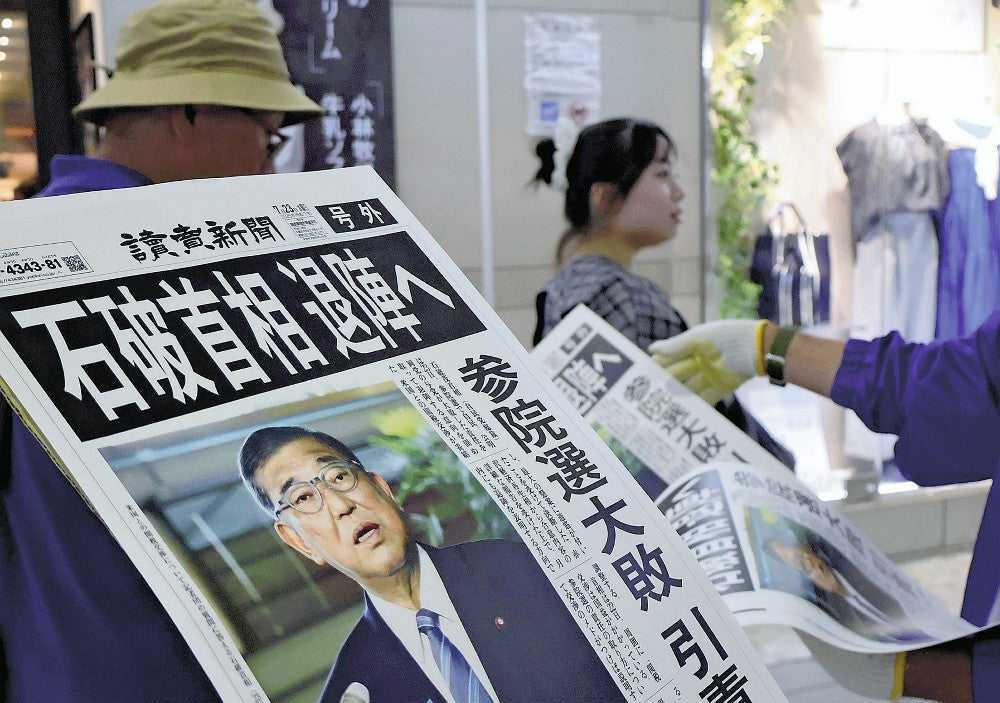 読売新聞北海道支社は23日、石破首相が退陣意向を固めたことを伝える号外をJR札幌駅近くで配布した。