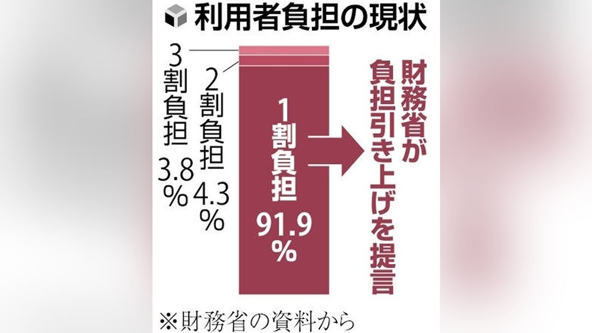 介護保険サービス利用者の自己負担を巡り、財務省は11日に開いた財政制度等審議会(財務相の諮問機関)の分科会で、2割負担の対象者の拡大が必要との考えを示した。現在は自己負担が1割のサービス利用者が全体の91・9%を占め、高齢化による介護費用の増加で現役世代の保険料負担が増している。財務省は分科会で、「現役世代の負担の増加を抑制するために制度改革を実施すべきだ」と指摘した。