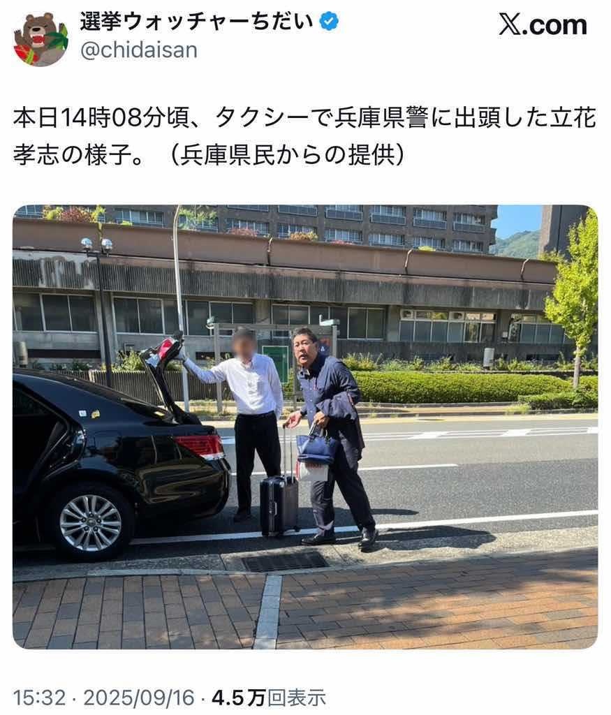 速報 立花孝志 兵庫県警に出頭 手荷物いっぱい(画像あり)www www