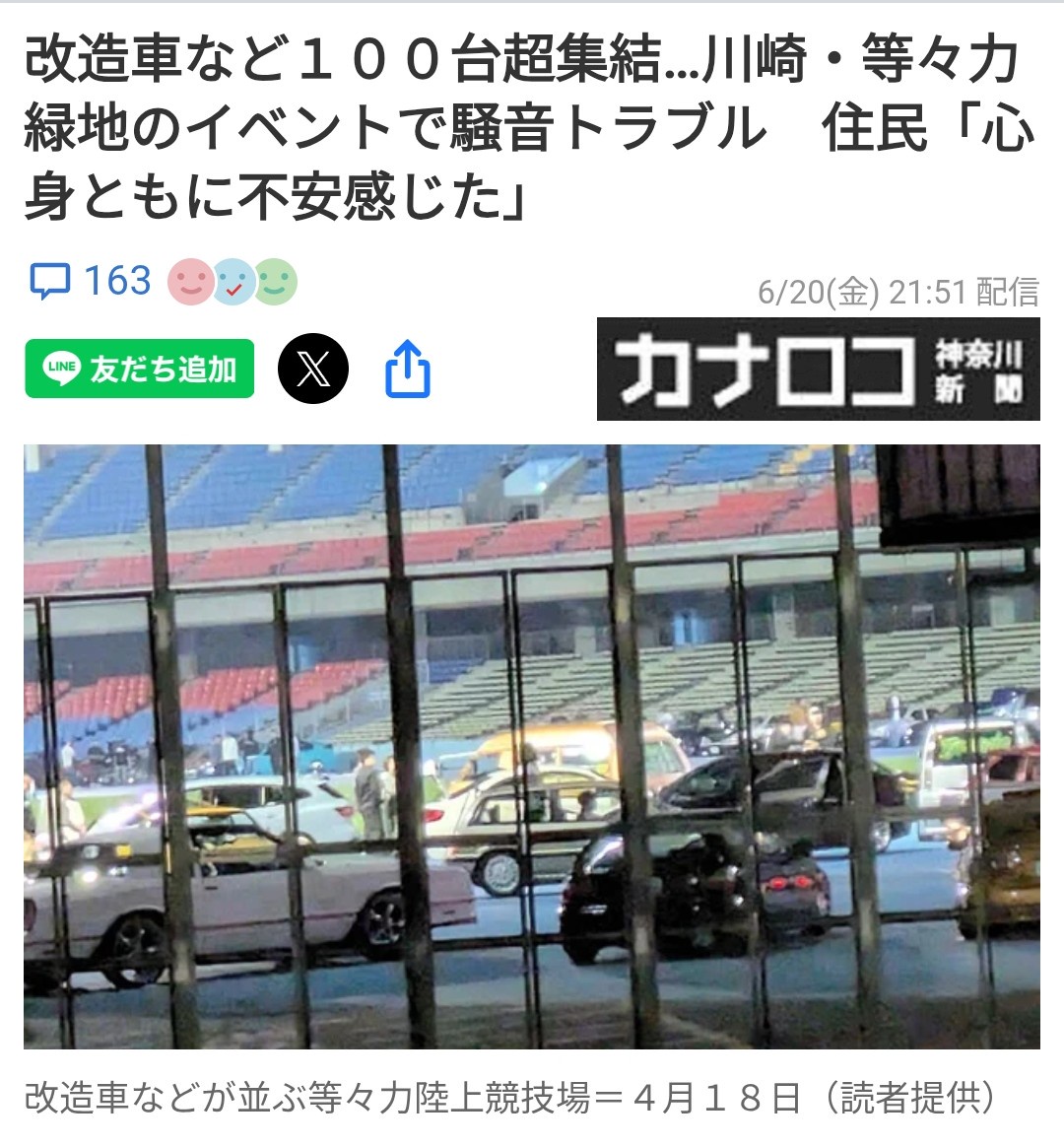 違法改造車カスのイベントに施設貸す川崎市って馬鹿なの?反社イベントだよ?騒音トラブルで110番
