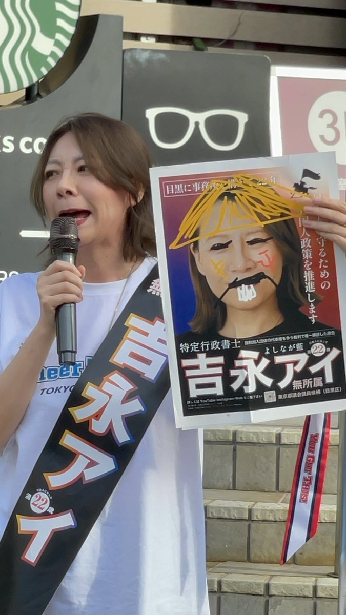 吉永氏は22日投開票の都議選目黒区選挙区に無所属で出馬。「日本人を守るための外国人政策を推進します」と公約に掲げたが、得票は1791票で同選挙区に立候補した9人の中で最下位だった。