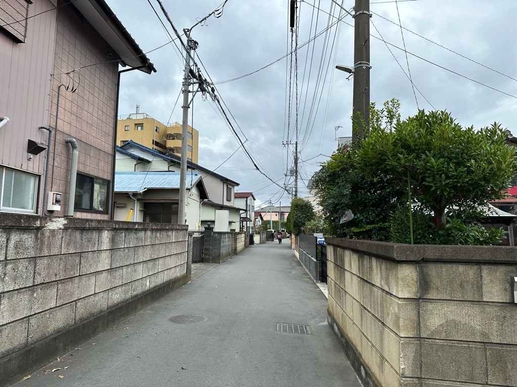 左の家に電柱から斜め下に張られた支線ケーブルがあるが、