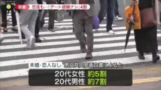 ニュー速 20代未婚男 一度も恋人いた事ない70%😢 日本政府が白書を公表