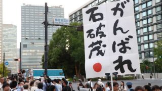 ニュー速+ 官邸前で「石破辞めるな」 首相続投求めデモ-東京・永田町