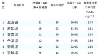 ニュー速 水が汚い海水浴場が多い都道府県ランキング2025、3位青森、2位愛知、意外な1位は北海道!