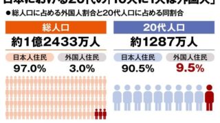 ニュー速+ 日本全体の外国人割合は「3%」でも「20代は10人に1人が外国人」という真実 「特定技能2号」で永住者が増えればさらに増加へ