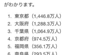 ニュー速 去年のインバウンド客数。東京1446万人、大阪1288万人、京都998万人、名古屋189万人