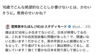 ニュー速 共産党支持者「16歳でこんな絶望的なことしか書けないとは、かわいそうに。教育のせいかね?」
