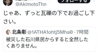 ニュー速 れいわ信者、また能登地震被災者に「瓦礫に埋もれてろ」と言ってしまう