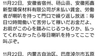 ニュー速 中国小学建設賃金未払い、安徽有限公司賃金未払い、婺源県賃金未払い、山西有限公司賃金未払い…