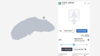 ニュー速+ 尖閣沖に貨物船「くたばれ日本」が停泊…なりすましか? 船舶情報サイトが非表示へ "F◯◯K JAPAN"