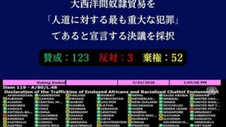 奴隷貿易は「人道に対する最も重大な罪」 国連で決議採択 米・イスラエルなど反対⋯日本は棄権