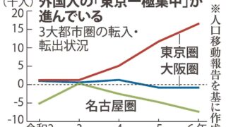 ニュー速 日本の外国人労働者、東京都に集中