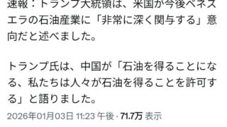 ニュー速 バカ日本人「マドゥロ拘束は中国に対する警告!」 →トランプ「中国はベネズエラから石油を獲続ける」