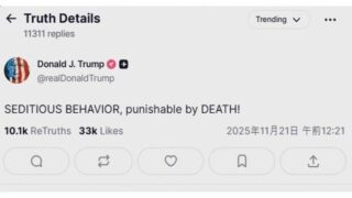 ニュー速+ トランプ大統領 民主党議員6人を「死刑にすべき」 “違法な命令は拒否を”との呼びかけを反逆行為だと主張
