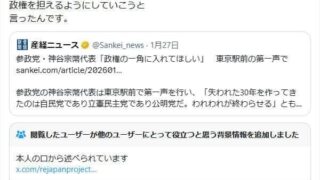 ニュー速+ 参政・神谷代表、産経新聞投稿の「政権の一角に入れて」発言否定 産経は訂正も…Xでは疑問符続々