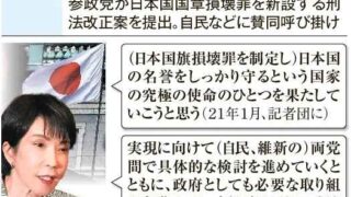 高市首相の悲願「国旗損壊罪」 自維、通常国会で制定目指す 「侮辱」定義不明確、表現の自由侵害恐れ:北海道新聞